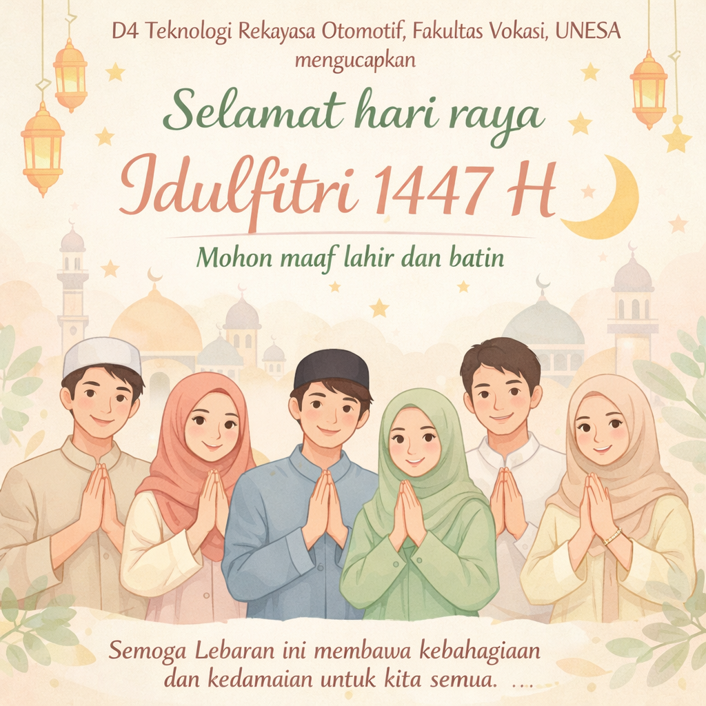 tro.vokasi.ac.id - Keluarga Besar Program Studi D4 Teknologi Rekayasa Otomotif, Fakultas Vokasi, Universitas Negeri Surabaya (UNESA) mengucapkan :